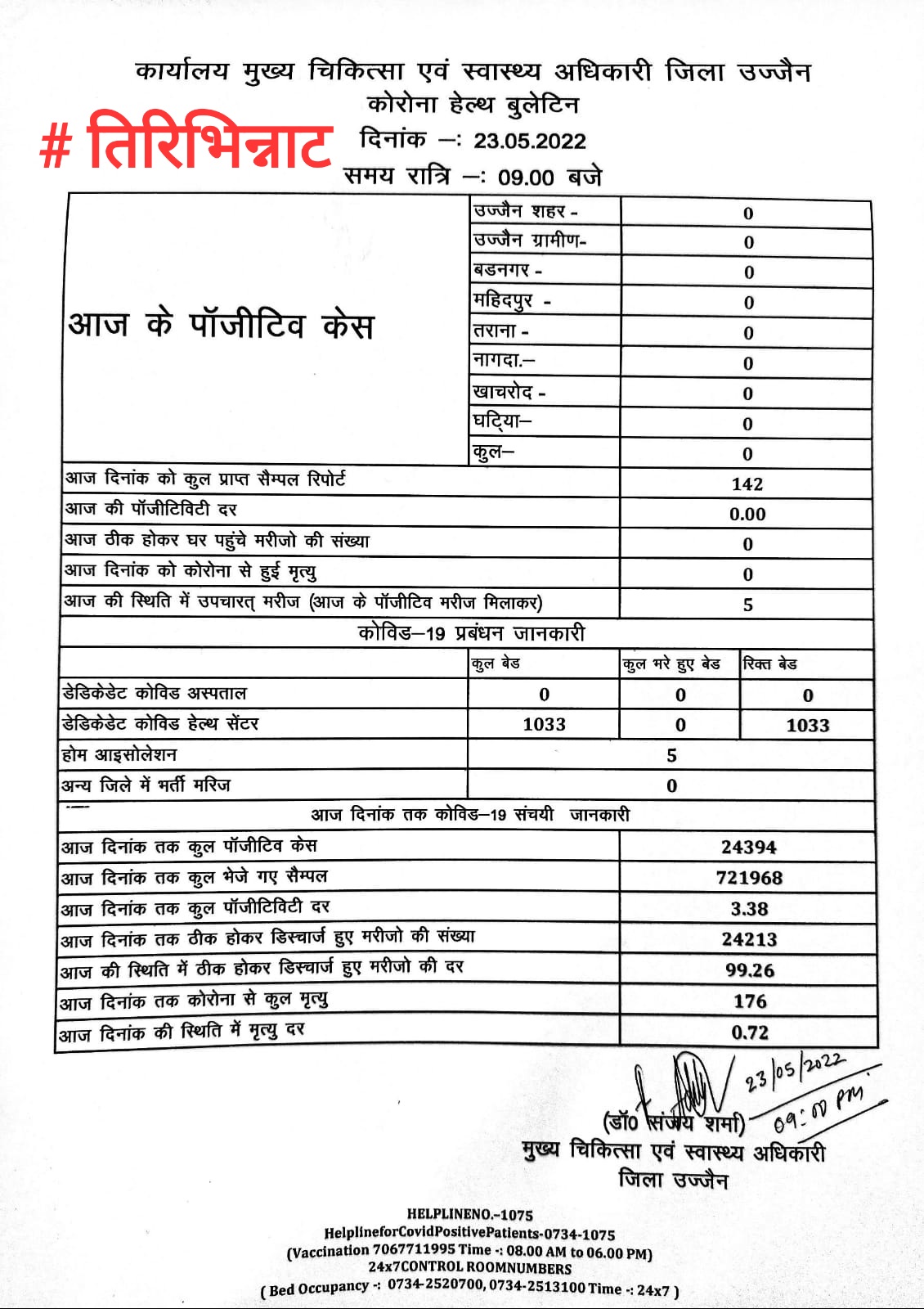 उज्जैन मे ये कुल 21 पॉजिटिव