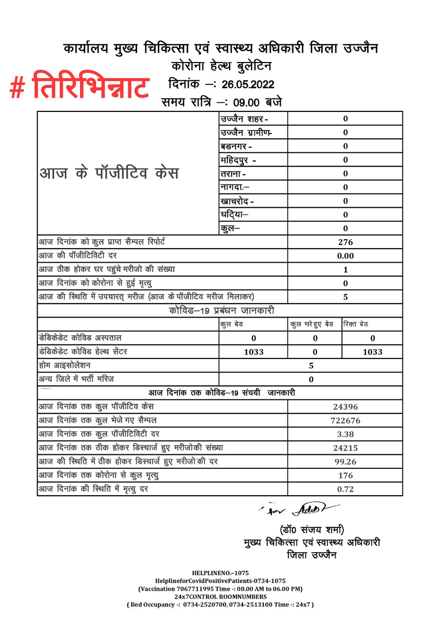*आज के पॉजिटिव देखें* *उज्जैन*<br>*कोरोना बुलेटिन*<br>27/12/2021