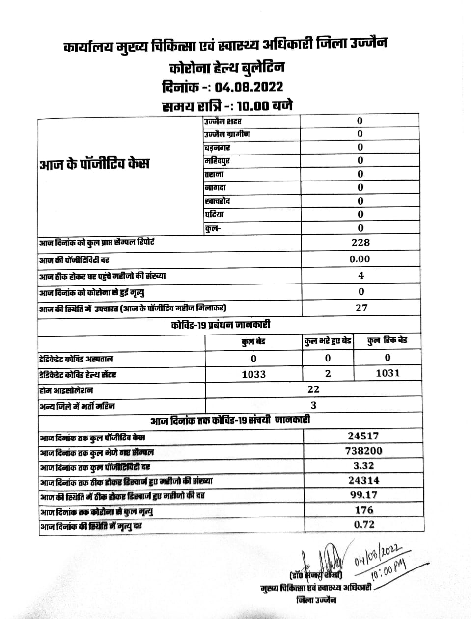 *आज के पॉजिटिव देखें* *उज्जैन*<br>*कोरोना बुलेटिन*<br>27/12/2021